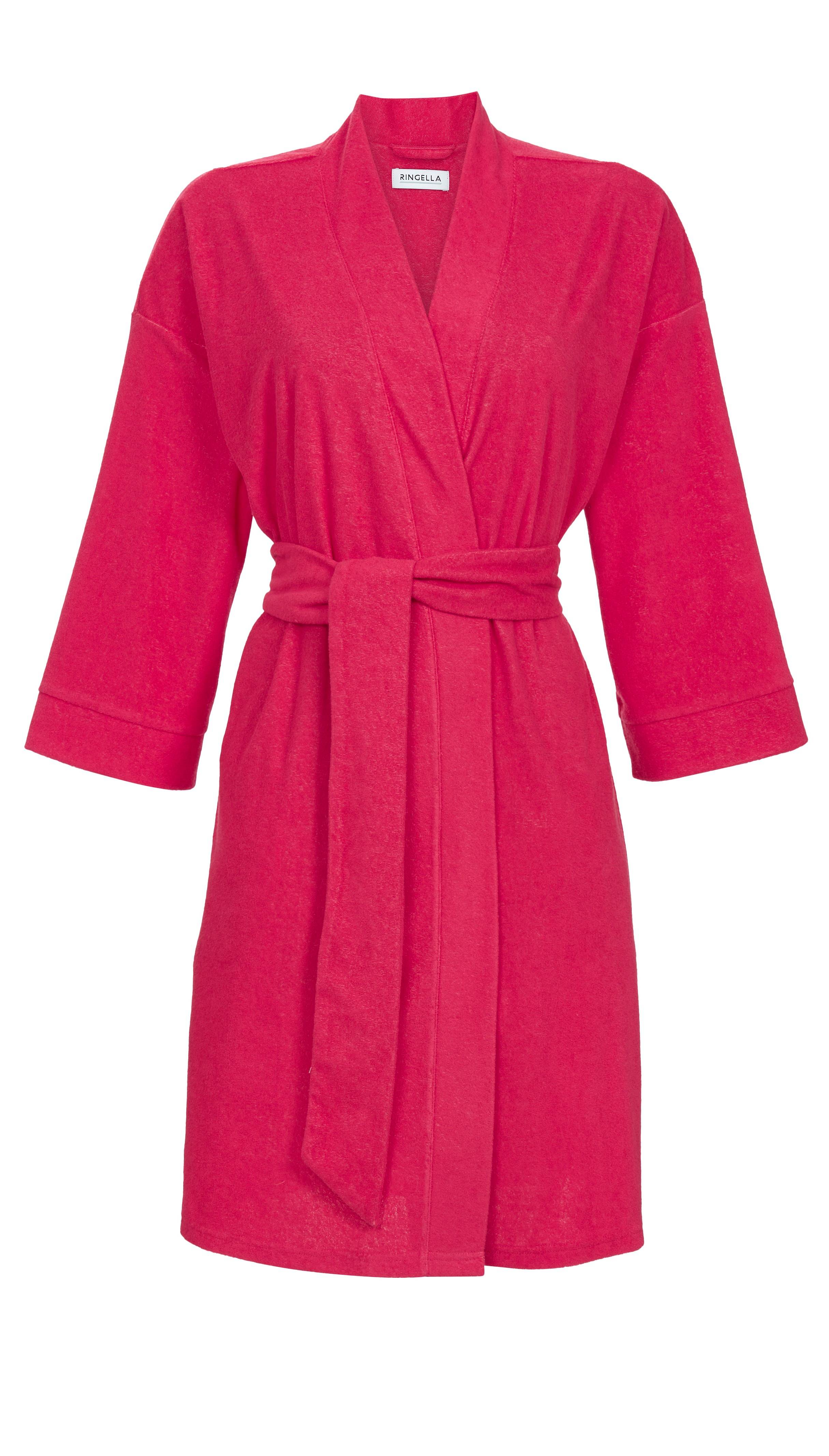 Stylischer Wickelmantel in Kimonoform mit 3/4 Arm, der eine elegante und bequeme Silhouette schafft. Der Bindegürtel betont die Taille und sorgt für eine individuelle Passform. Seitliche Eingrifftaschen bieten praktischen Stauraum. Hergestellt aus unifarbigem Stretchfrottee verbindet der Mantel Komfort mit einem klassischen, vielseitigen Look. Ein perfekter Partner für viele Gelegenheiten wie Sauna, Bad oder Wellness.