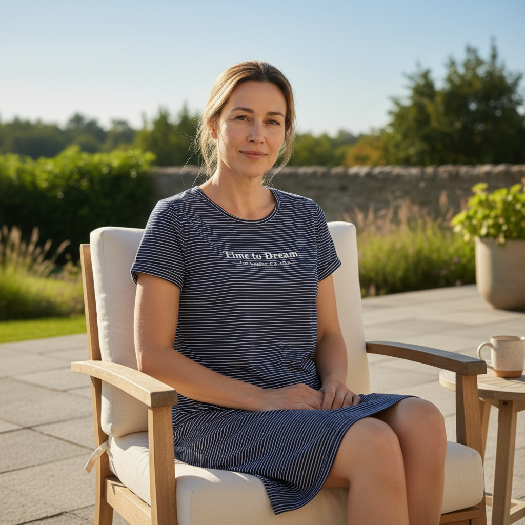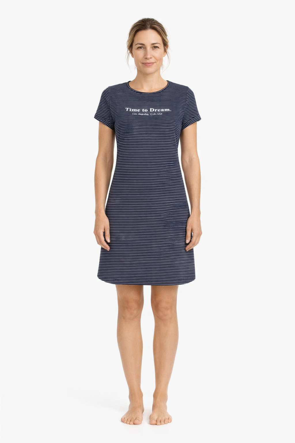 Gemütliches Nachthemd mit Rundhalsausschnitt und kurzen Ärmeln. Das Vorderteil ist mit einem modernen Letterprint verziert, der dem Design einen lässigen Akzent verleiht. Das Ringeldessin steht für einen trendigen Style. Gefertigt aus reiner Baumwolle in weicher Single Jersey-Qualität, bietet es eine angenehme Haptik und atmungsaktiven Tragekomfort für eine erholsame Nacht.