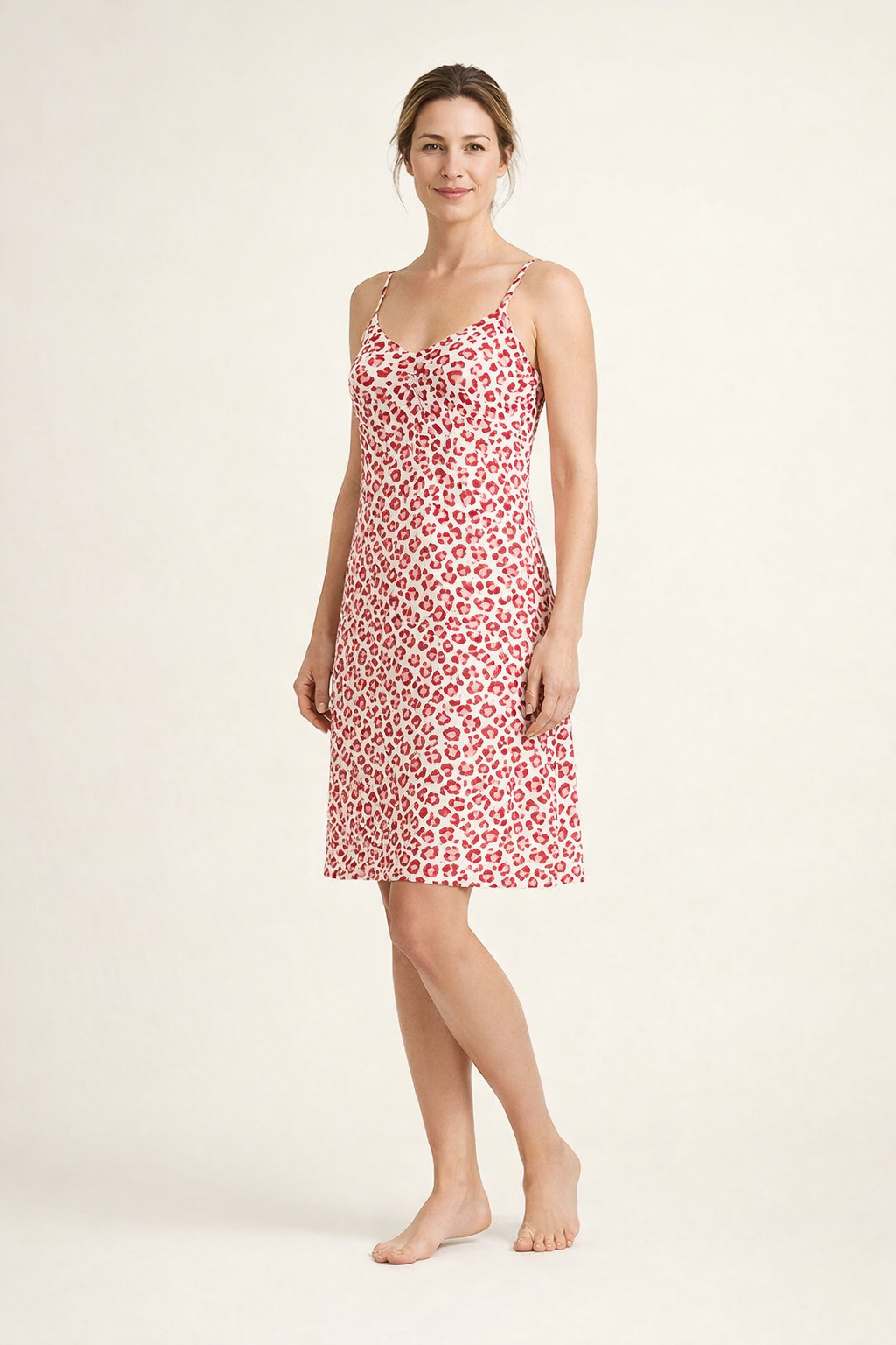 Topmodisch präsentiert sich dieses Sleepshirt im Animalprint. In rötlicher Farbstellung auf pastelligem Fond ist es ein gelungener Hingucker. Verstellbare Spaghettiträger sorgen für optimale Passform. Dieser schicke Style macht einfach Lust auf Sommer. Für Komfort und ein angenehmes Tragegefühl sorgt der Viskose-Elasthan-Mix in Single Jersey-Qualität.