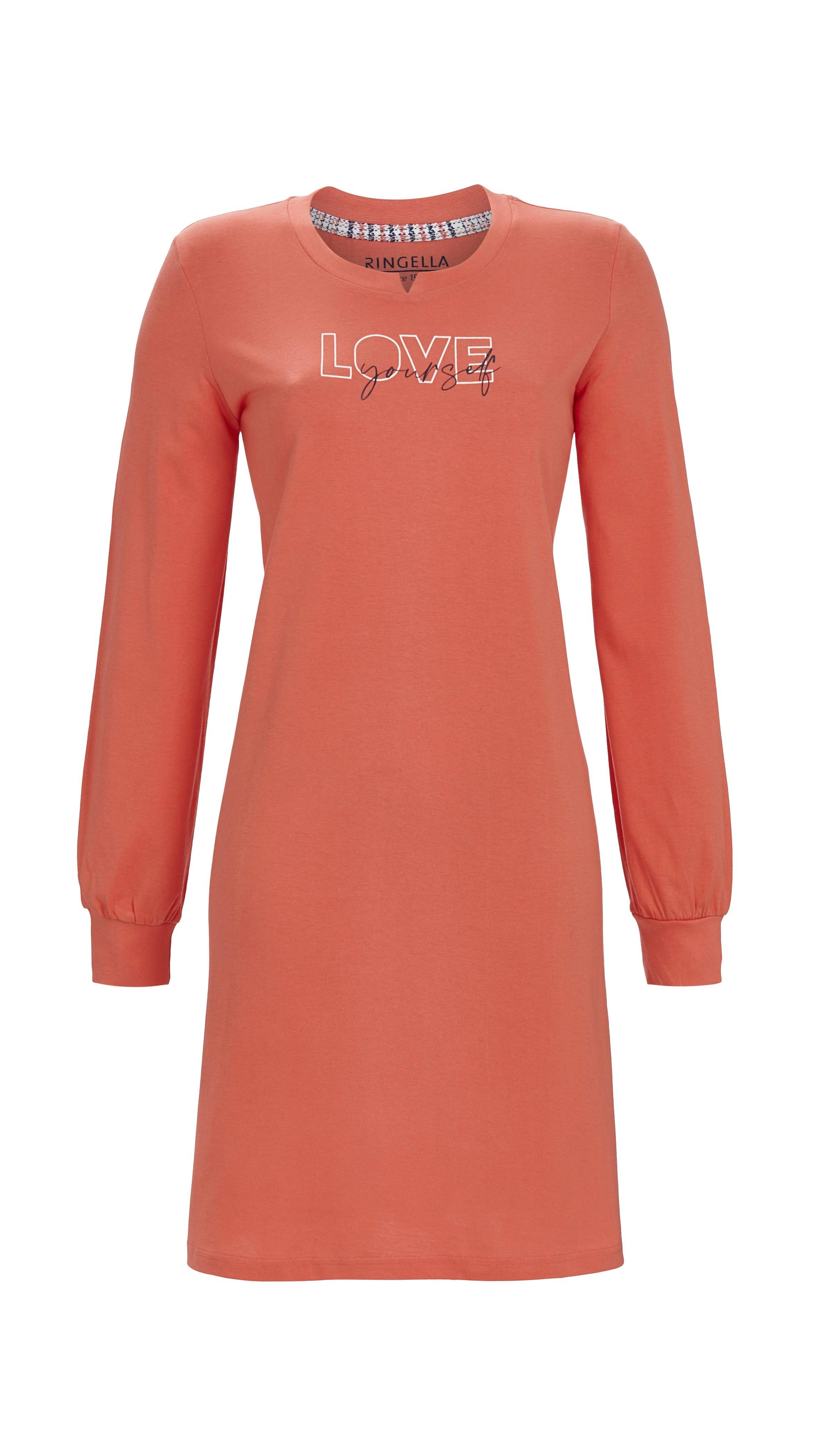 Genießen Sie stilvollen Komfort mit unserem unifarbenen Nachthemd, das Eleganz und Gemütlichkeit perfekt vereint. Dieses charmante Nachthemd bietet Ihnen einen Rundhalsausschnitt mit modischem Strickbündchen, das für einen angenehmen Sitz sorgt. Die langen Ärmel punkten mit Wärme und die Strickbündchen mit einen lässigen Look. Der Letterprint auf dem Vorderteil ist ein trendiges Detail, das dem Nachthemd eine moderne und verspielte Note verleiht. Hergestellt aus reiner Baumwolle, ist für ein weiches und angenehmes Tragegefühl und entspannte Nächte gesorgt. Dieses Nachthemd ist die perfekte Wahl für Frauen, die Wert auf Stil und Komfort legen. Gönnen Sie sich dieses gemütliche Nachthemd und genießen Sie süße Träume in einem modischen Look.