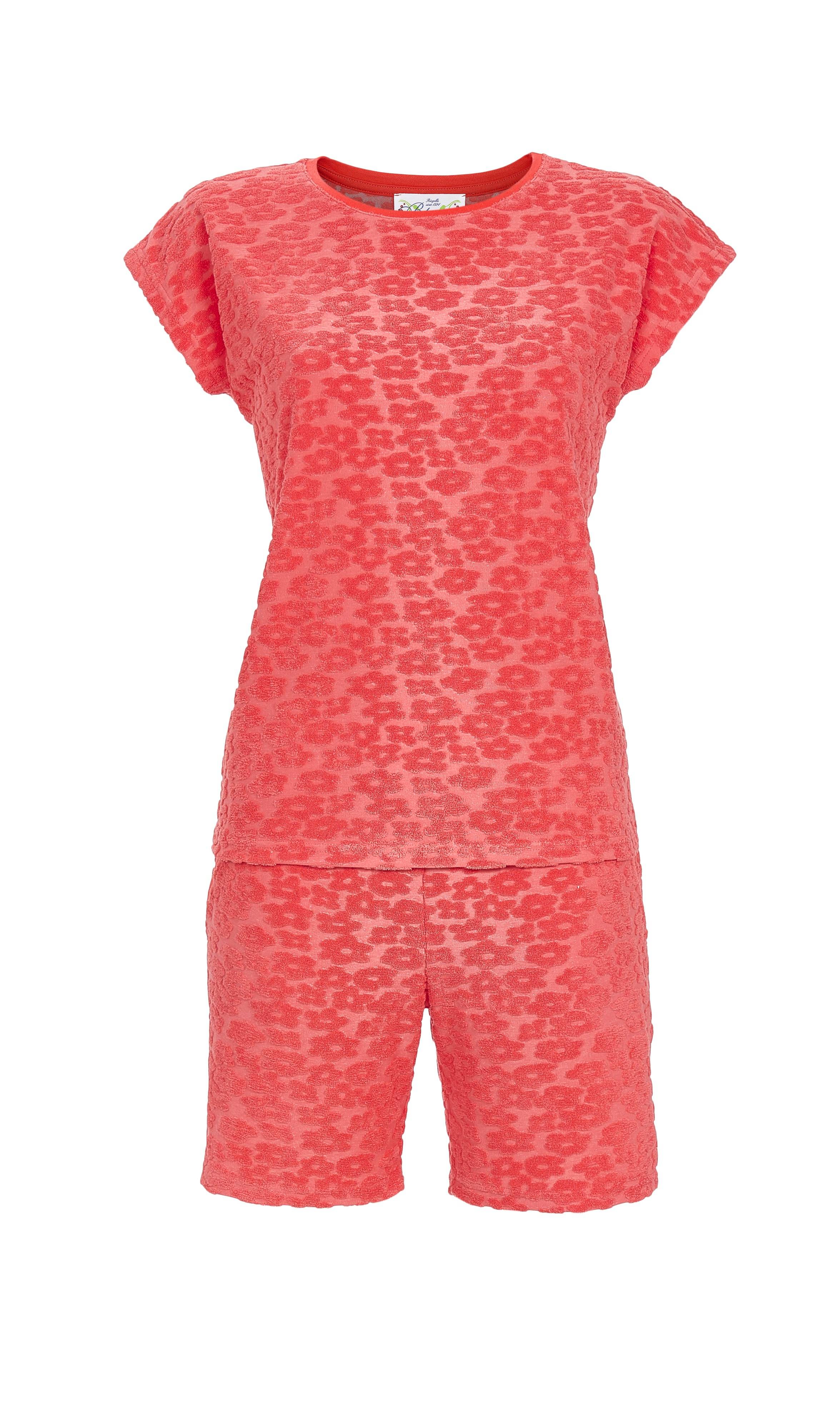 Modischer Shorty mit Rundhalsausschnitt und überschnittenen Schultern für einen lässigen Look. Die seitlichen Eingrifftaschen in der Shorts bieten praktischen Stauraum. Gefertigt aus hochwertigem Jacquard-Stretchfrottee aus Baumwolle und Polyester, sorgt er für ein angenehmes Tragegefühl und eine optimale Passform. Der weiche Gummizugbund der Shorts steht für Bequemlichkeit. Perfekt für Freizeit und zu Hause. Das Material ist pflegeleicht und formbeständig.