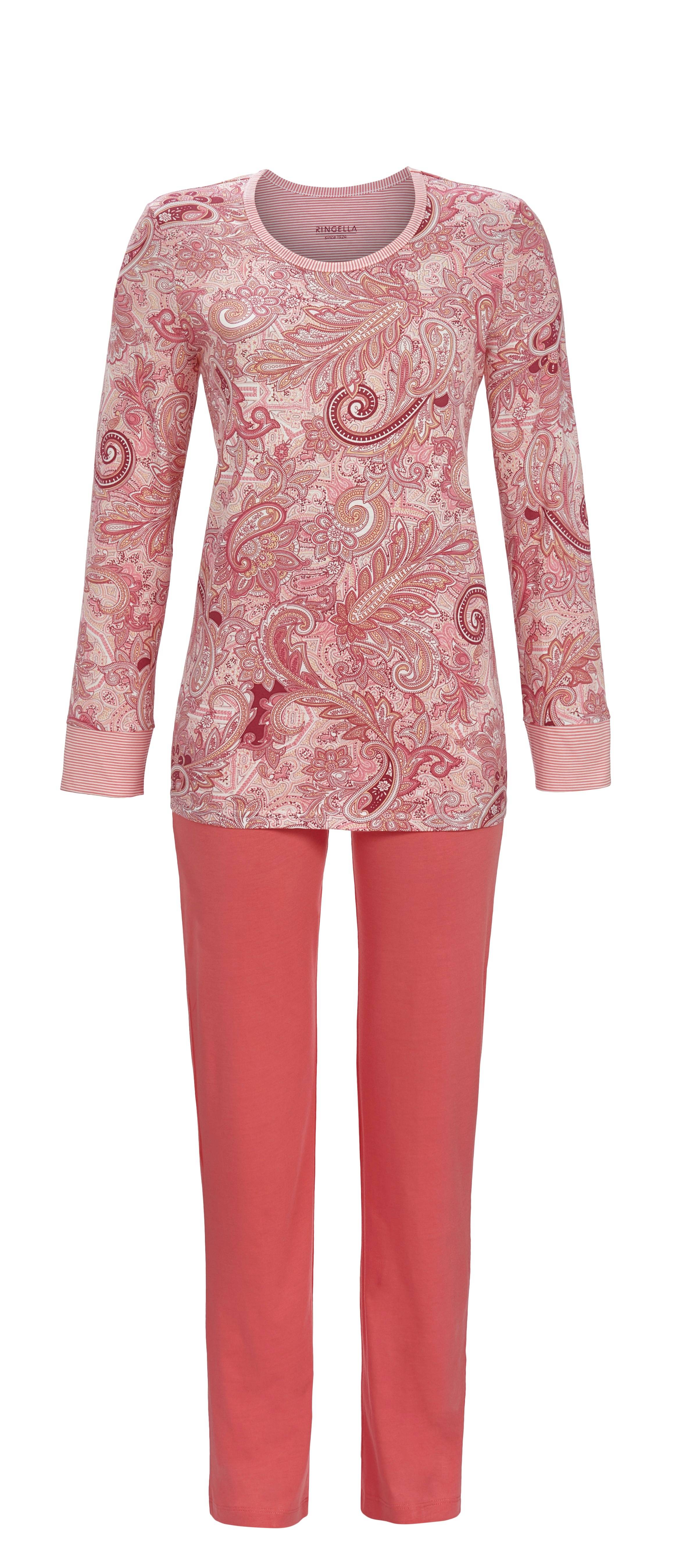 Dieser Damen Schlafanzug ist eine bequeme Wahl für entspannte Nächte. Er verfügt über einen klassischen Rundhalsausschnitt, der mit einer eleganten Kontrastrollierung verziert ist, was dem Schlafanzug eine besondere Note verleiht. Die langen Ärmel sind mit einer Kontrastblende ausgestattet, die für einen harmonischen und modischen Look sorgt. Das ansprechende Paisley-Dessin bringt einen Hauch von Eleganz und versprüht eine fröhliche Atmosphäre. Mit unifarbiger Hose wird der trendige Style hervorgehoben. Hergestellt aus einem hochwertigen Baumwoll-Modal-Mix in Single Jersey-Qualität, bietet der Schlafanzug ein besonders weiches und angenehmes Tragegefühl auf der Haut. Die atmungsaktive Materialkombination garantiert, dass Sie sich rundum wohlfühlen, egal ob beim Schlafen oder beim Entspannen zu Hause. Stil und Komfort sind hier vereint.