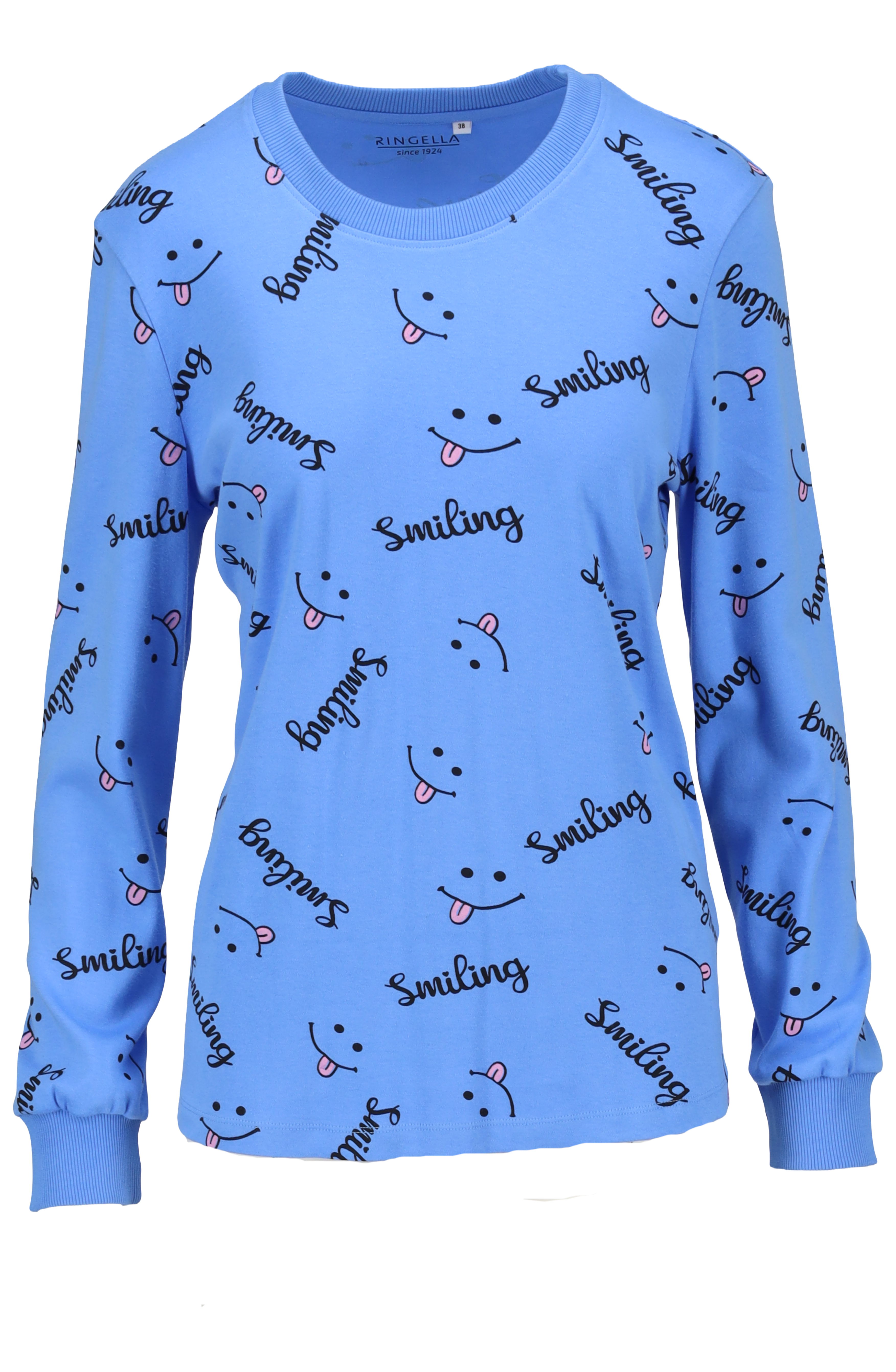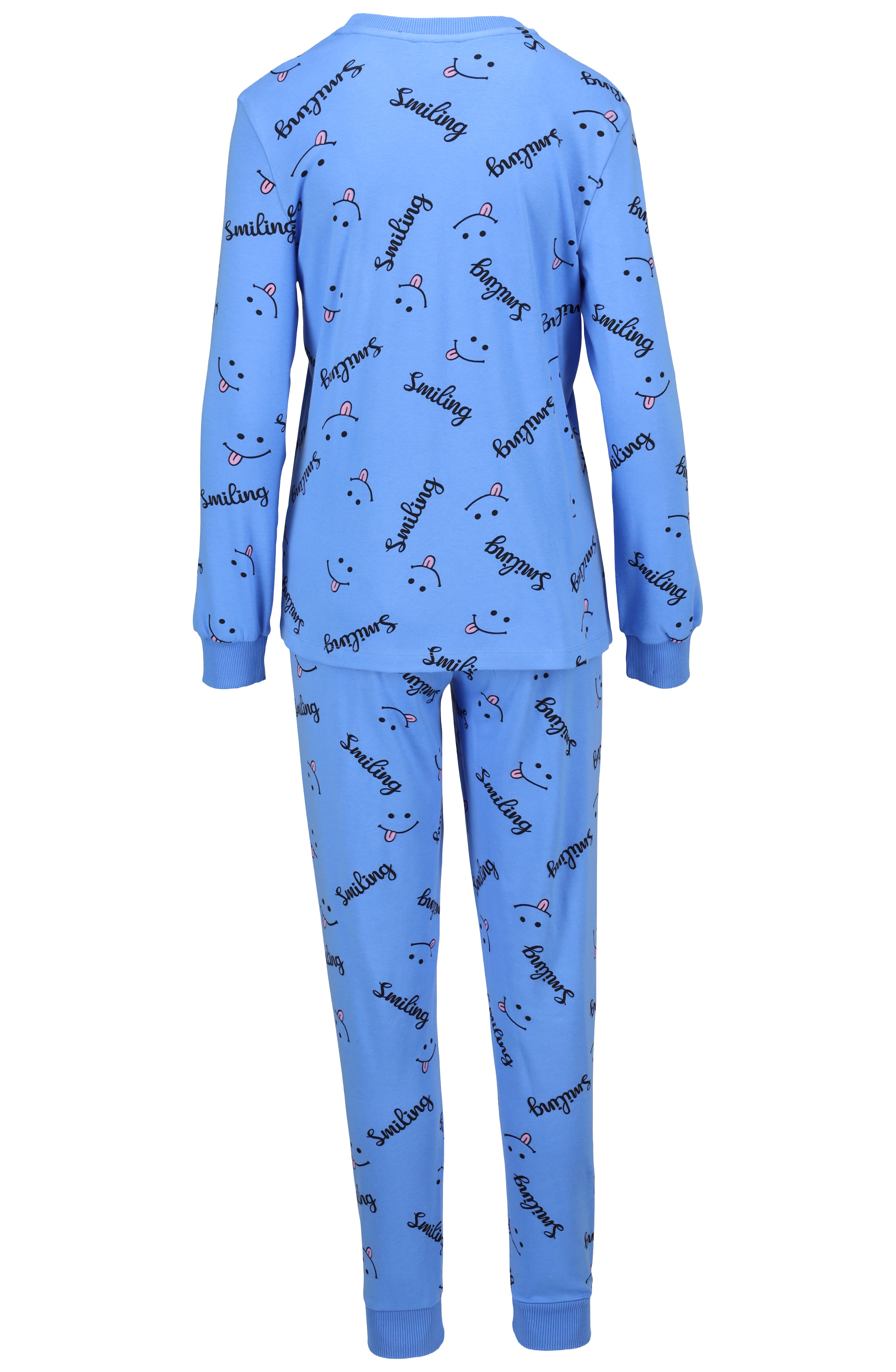 Dieser Damen Schlafanzug versüßt Ihnen die Träume und garantiert erholsamen Schlaf. Er verfügt über einen klassischen Rundhalsausschnitt, der mit einem modischen Strickbündchen verziert ist, ebenso wie die Ärmelbündchen und Hosenbeine, was für einen angenehmen Sitz und zusätzlichen Komfort steht. Das ansprechende Dessin verleiht dem Schlafanzug eine individuelle Note und macht es zu einem echten Blickfang. Hergestellt aus hochwertiger Baumwolle in Interlock-Qualität, bietet dieser Schlafanzug ein besonders weiches und angenehmes Tragegefühl auf der Haut. Die atmungsaktive Baumwolle sorgt dafür, dass Sie sich rundum wohlfühlen, egal ob beim Schlafen oder beim Entspannen zu Hause.
