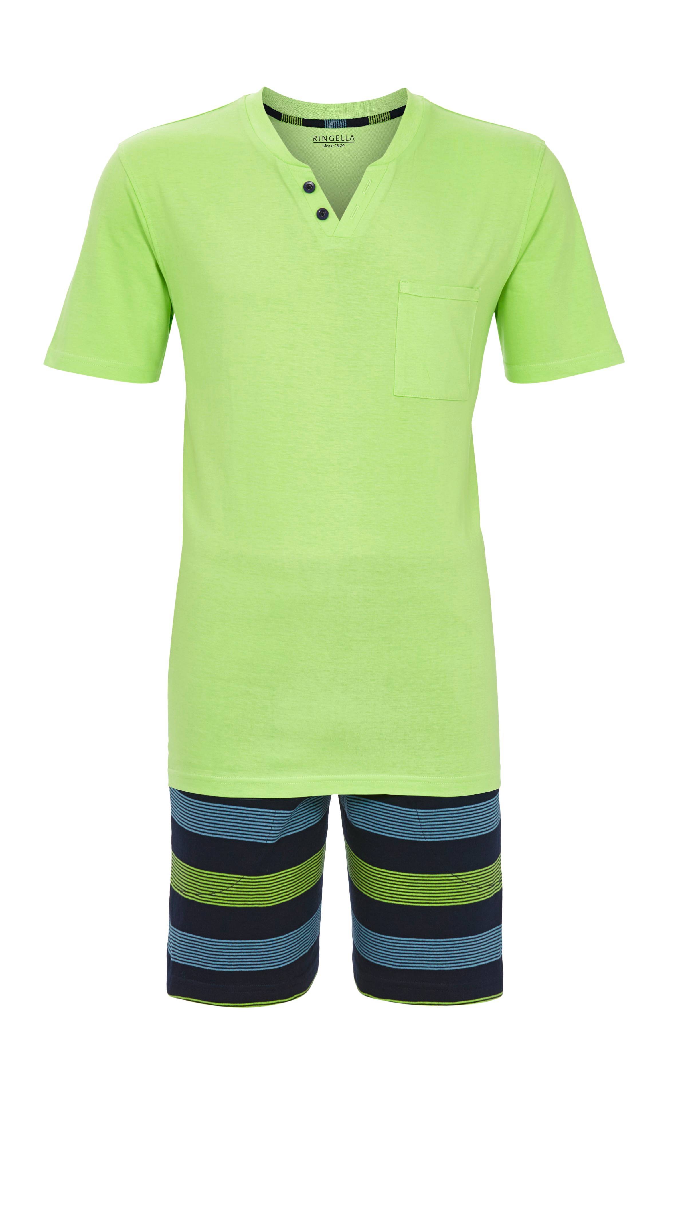 Jung und modern stellt sich dieser Kurzpyjama vor. Im trendigen Ringel-Dessin ist die Bermudahose ein richtiger Blickfang. Praktisch ist der dehnbare Hosenbund mit Gummizug und seitliche Eingrifftaschen. Das Oberteil in Uni ist perfekt abgestimmt und eine schöne Ergänzung. Mit raffinierter Ausschnittverarbeitung und Zierknöpfen. Hergestellt aus hochwertiger Baumwolle in Single Jersey-Qualität liegt der Stoff weich auf der Haut und sorgt für vollsten Tragekomfort und Pflegeleichtigkeit.